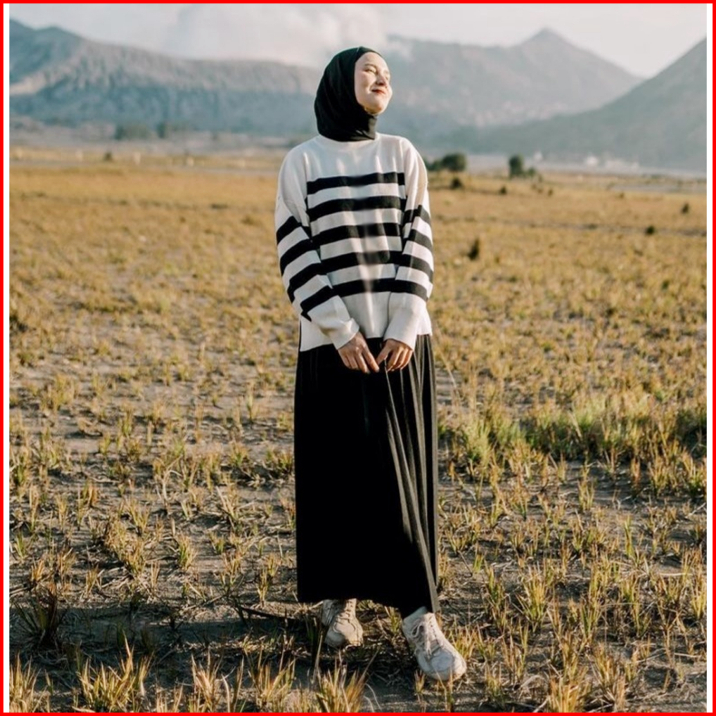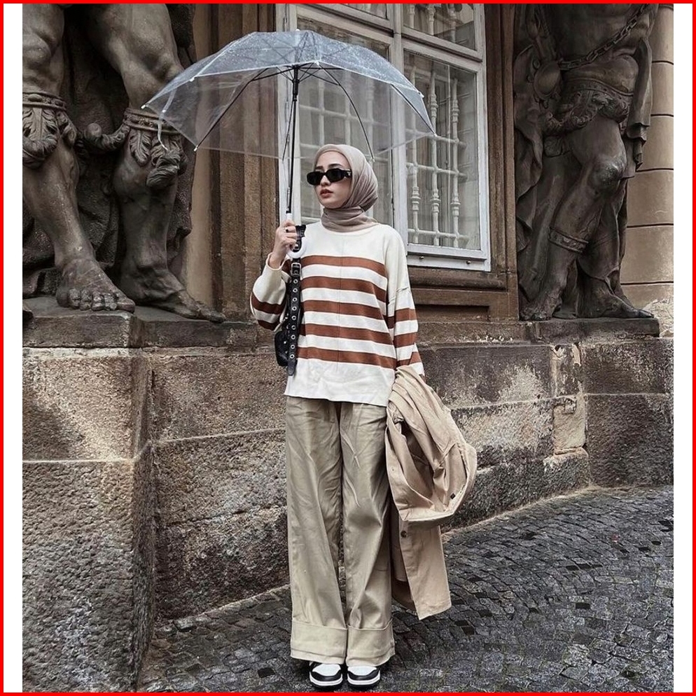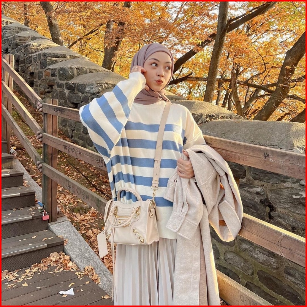 Sweater Rajut Wanita Oversize - Stripe Blouse Haira Knit