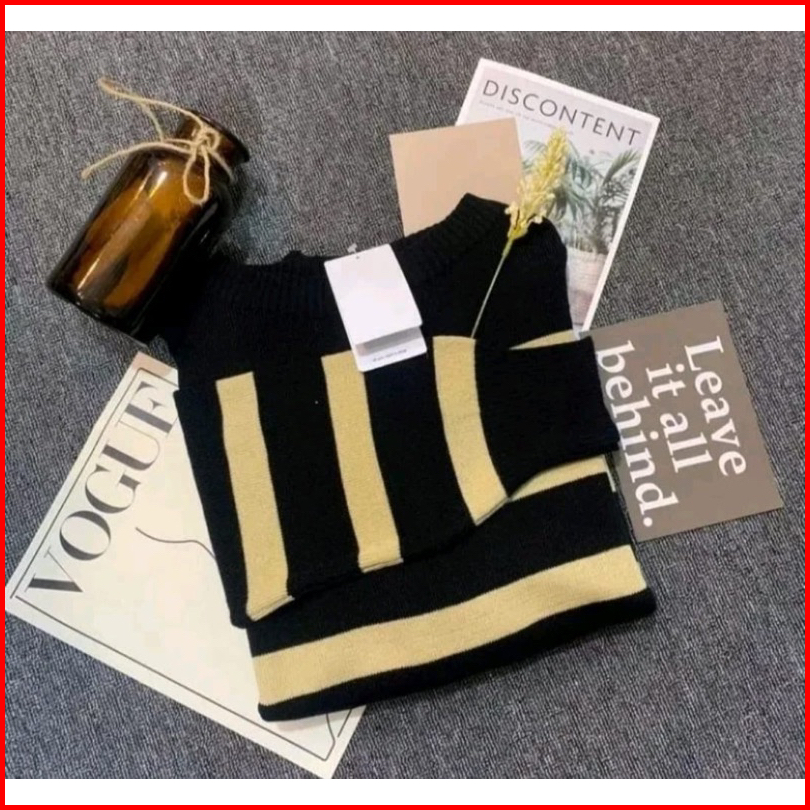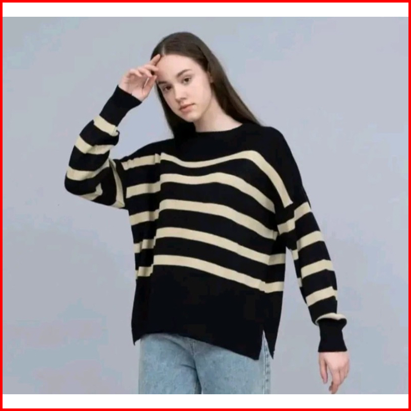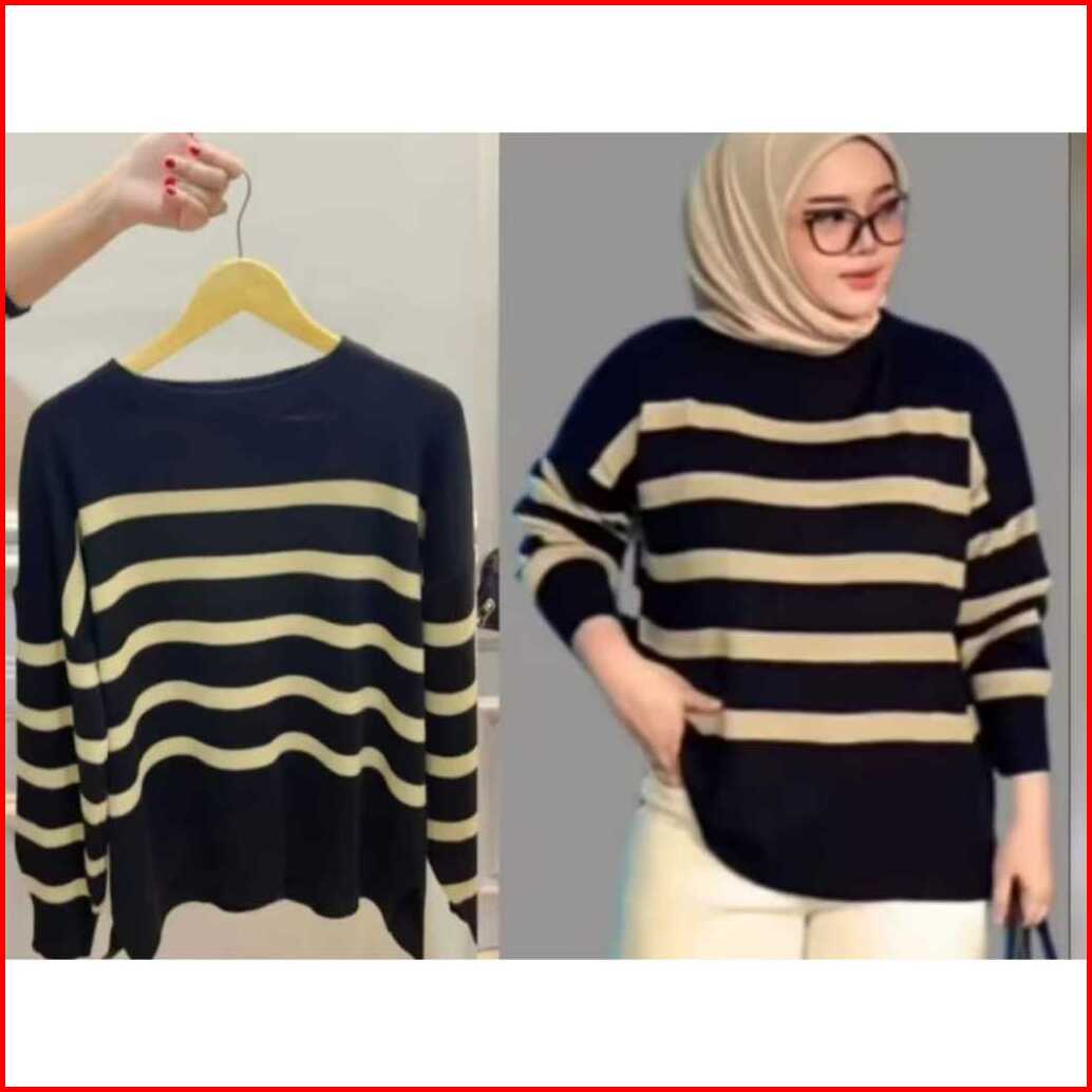 Maudy Sweater Rajut Garis Knit Korea Style Premium Size Jumbo Bb 40kg-90kg Pakaian Wanita Dewasa Terbaru Dan Terlaris