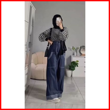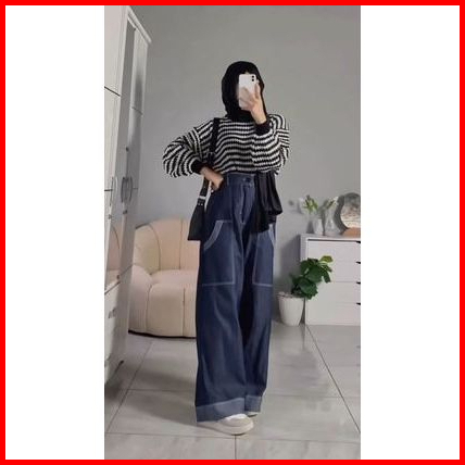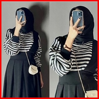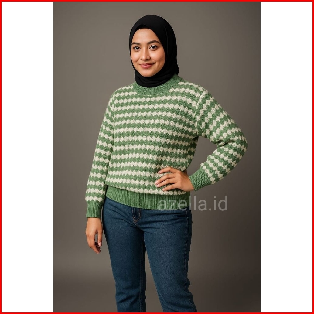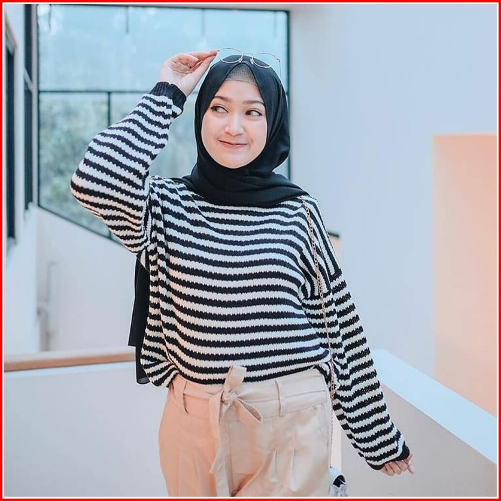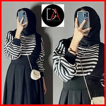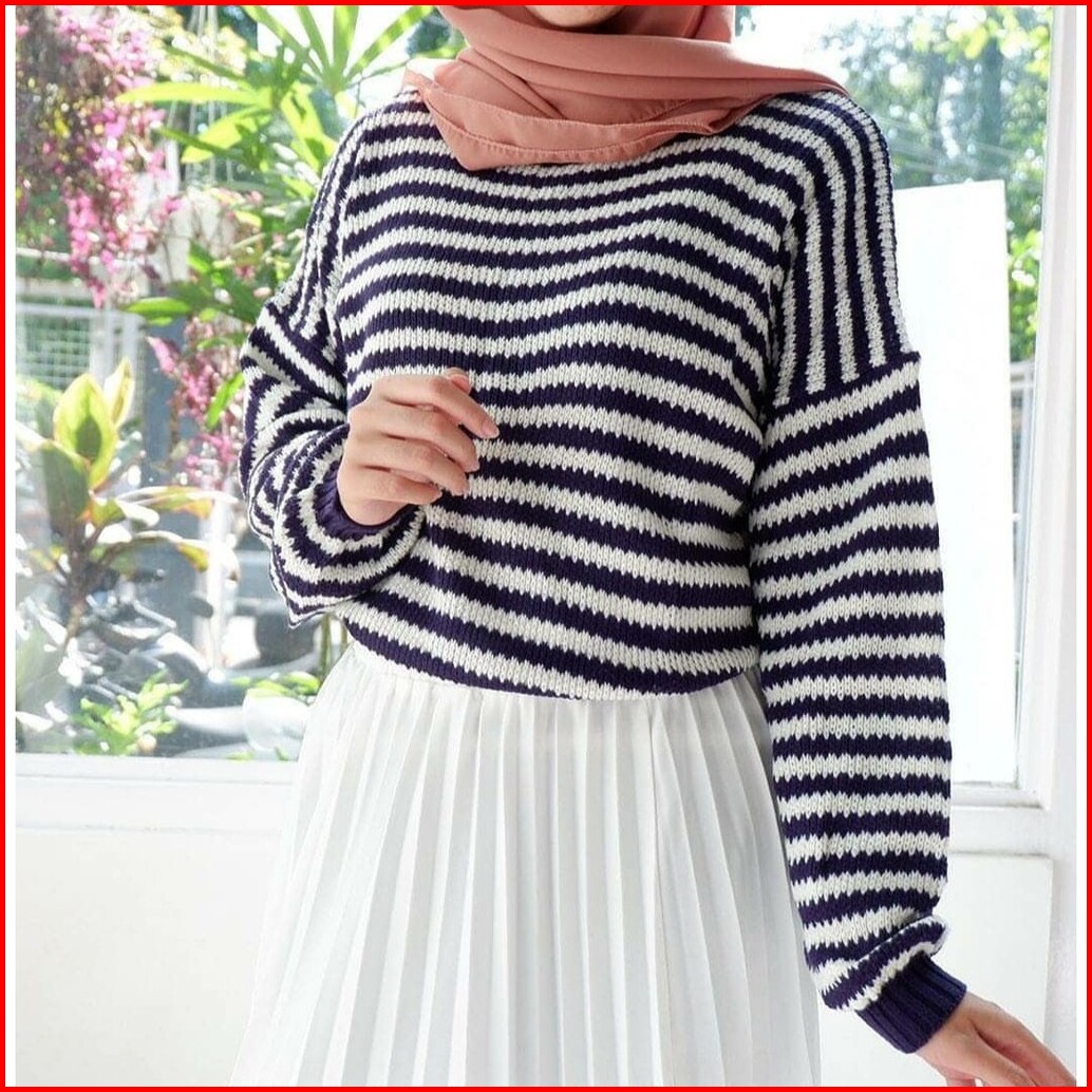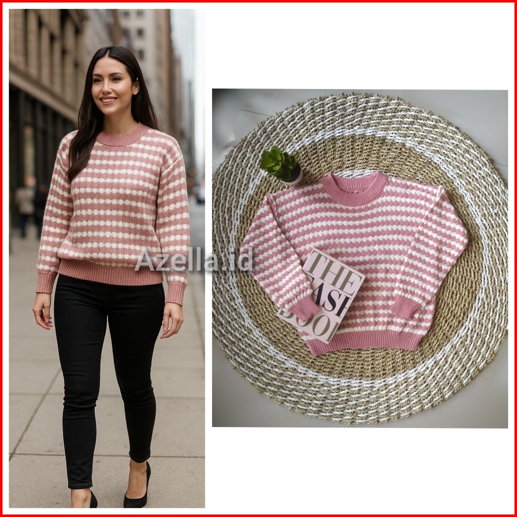 Azl Sweater Popcorn Blaster - Atasan Rajut Knit Wanita - Motif Stripe Garis Garis