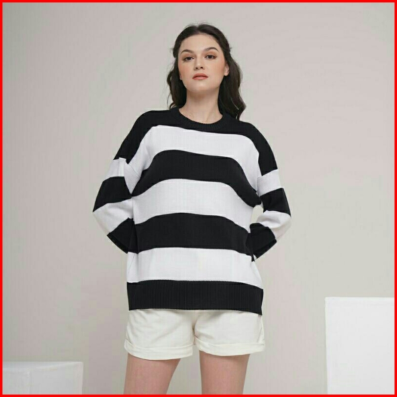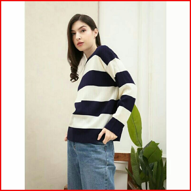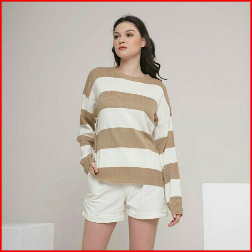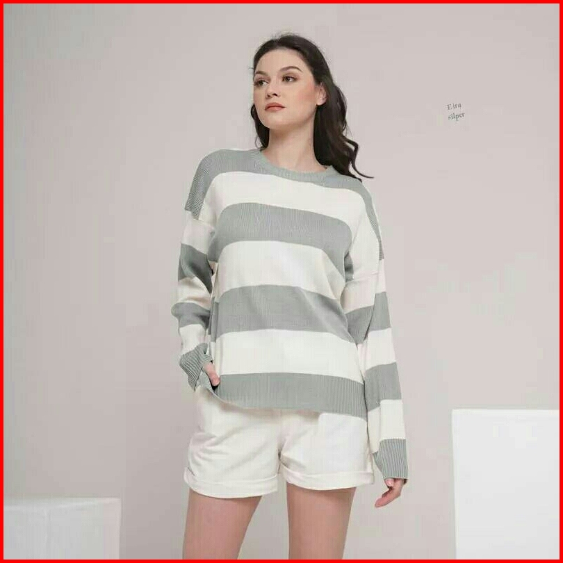 Eira Sweater Rajut Blouse Eira Rajut Atasan Rajut Wanita Sweater Stripped Knit