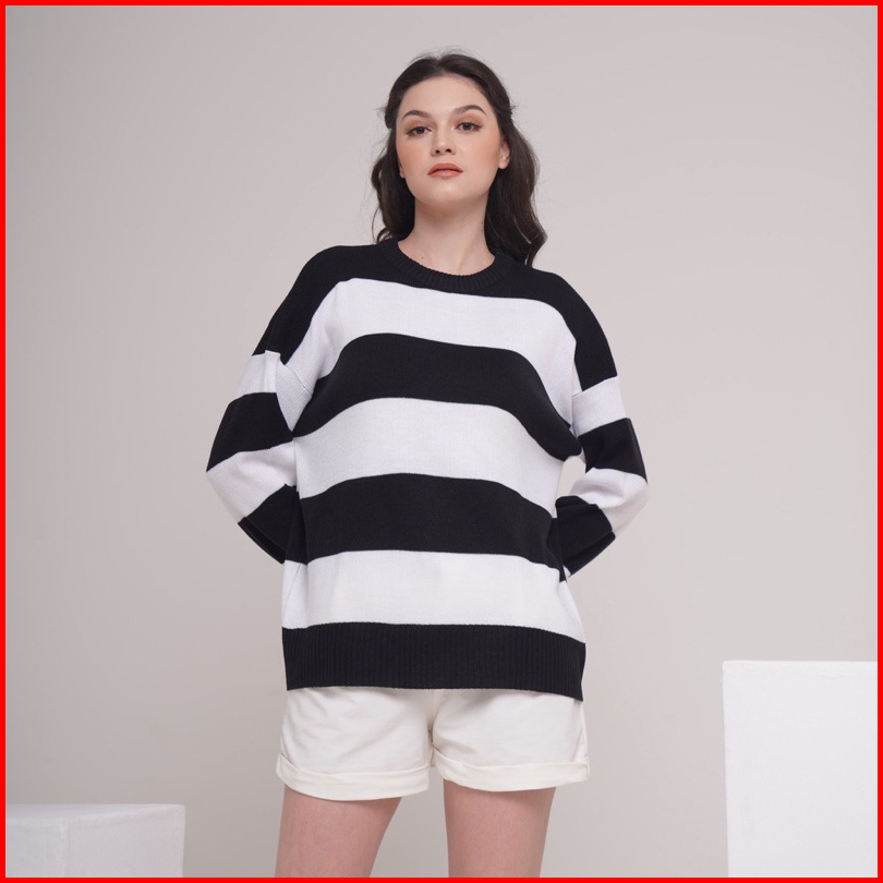 Sweater Rajut Eira Atasan Oversize Motif Garis