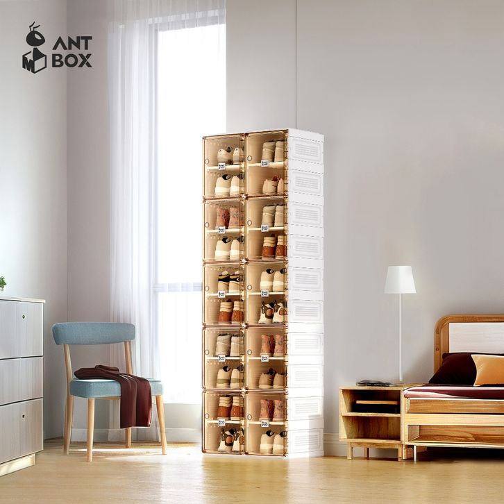 ANTBOX Rak Sepatu Kapasitas 20 Pasang Sepatu Lemari Sepatu Lipat Tertutup Pintu Magnet Rak Sepatu Plastik Tebal Kokoh