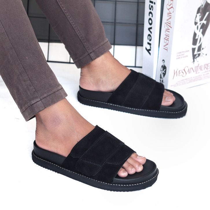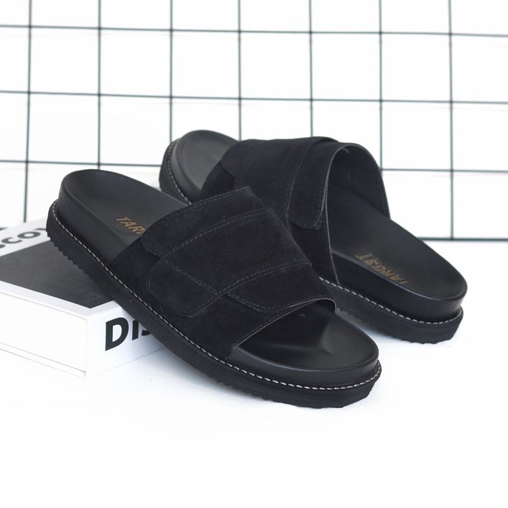 SANDAL KASUAL SANDAL SLIDE SANDAL SLIP ON SANDAL PRIA DAN WANITA TARGET BLACK ORIGINAL HANDMADE SERIES X CYS FREE ONGKIR