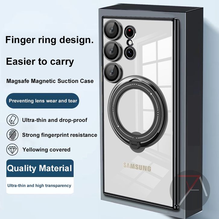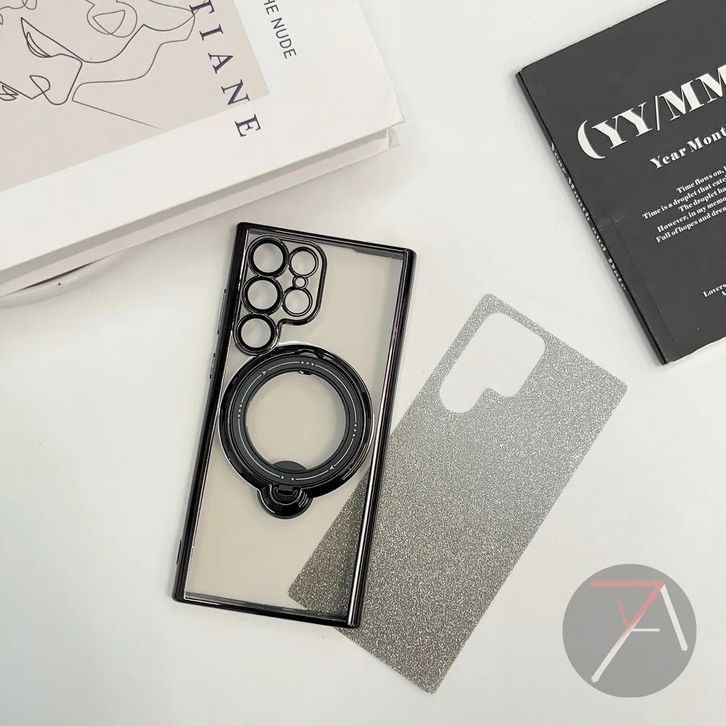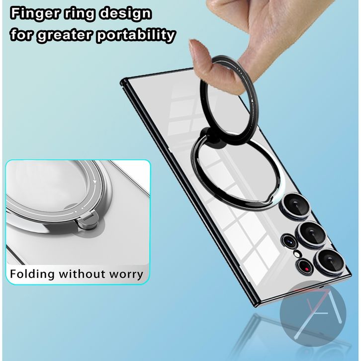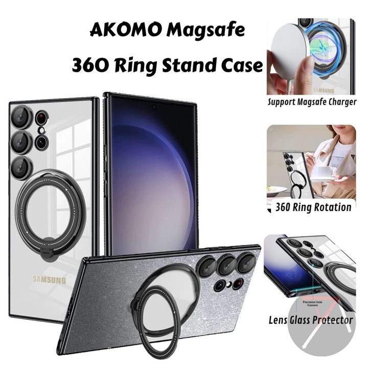 AKOMO Case Samsung Galaxy S24 Ultra / S23 / S22 / FE / Plus 5G Magsafe Softcase Kick Stand 360 Ring Silicone CLEAR & GL