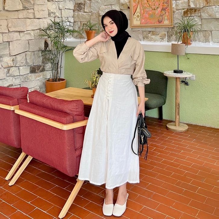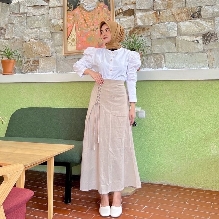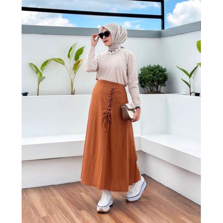 Rok Skirt Cantik Outfit Wanita Bawahan Maxi Cewek Aksen Serut Gaya Korean Vintage Hijab Kekinian Friendly Crinkel