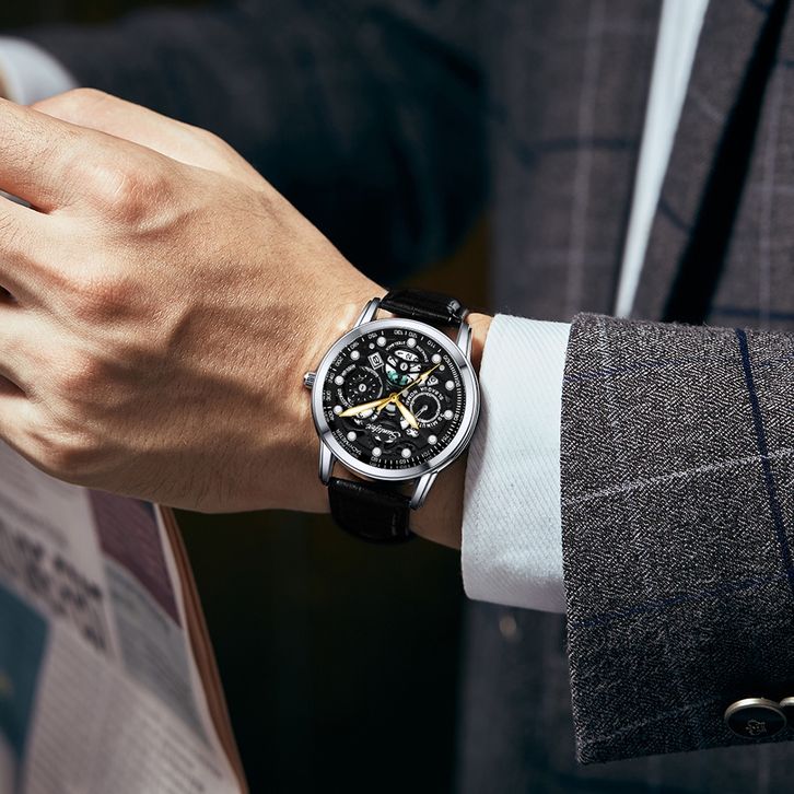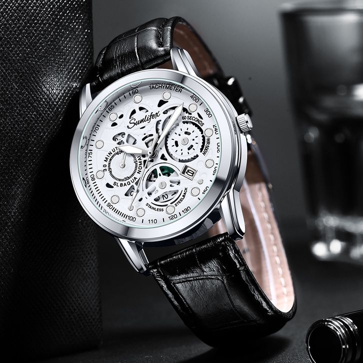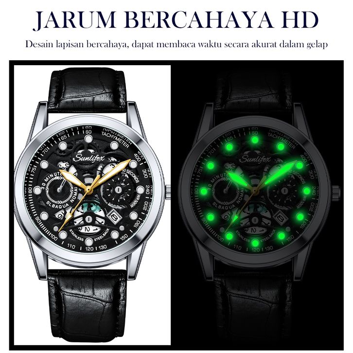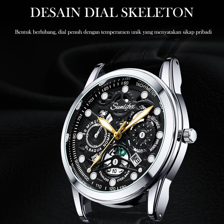 Jam Tangan Cowok Dial Berongga Anti Air Kuarsa Tali Kulit Arloji Sunlifex Santai Mode Fashion Cowok Kekinian