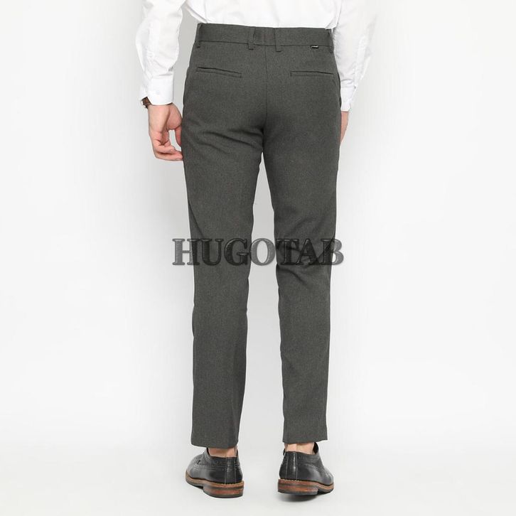 HUGOTAB - DARK GREY ANKLE PANTS SLIMFIT / CELANA FORMAL PRIA SEMIWOLL / CLANA BAHAN KANTOR PRIA B