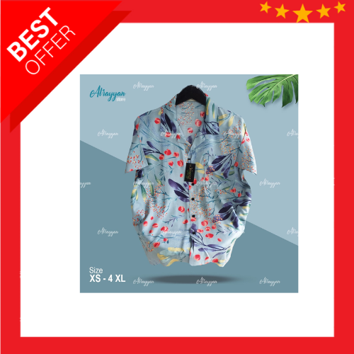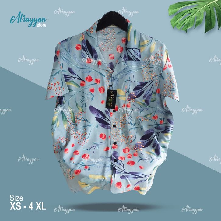 Kemeja Hawai Rayon Motif Floral Light Blue Lengan Pendek Men And Women Baju Santai Hawalili Pria Kemej