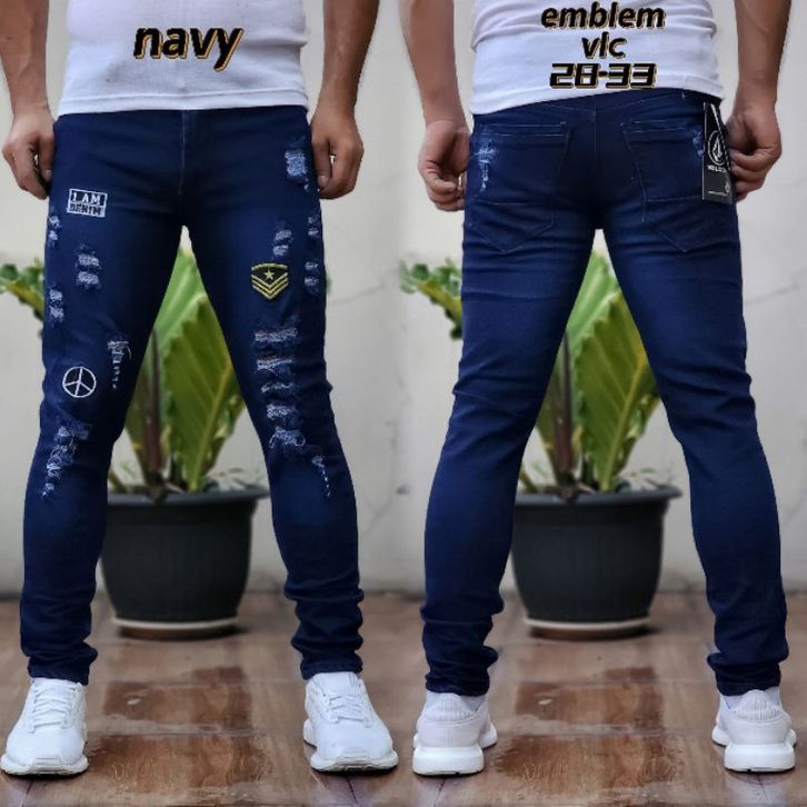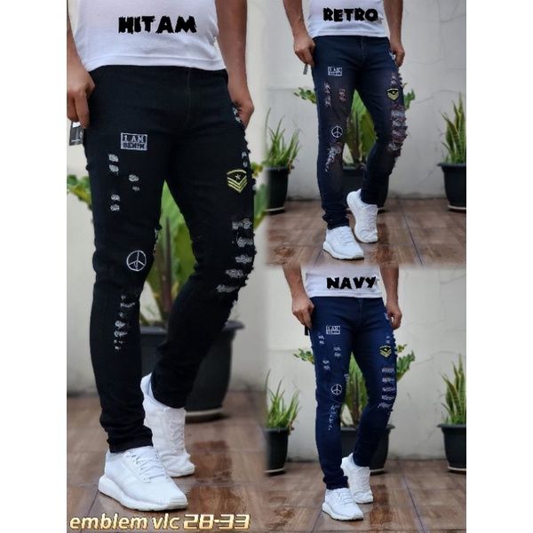 Celana Jean's Motif Emblem - Celana Jeans Cowo Biker's Keren TERLARIS