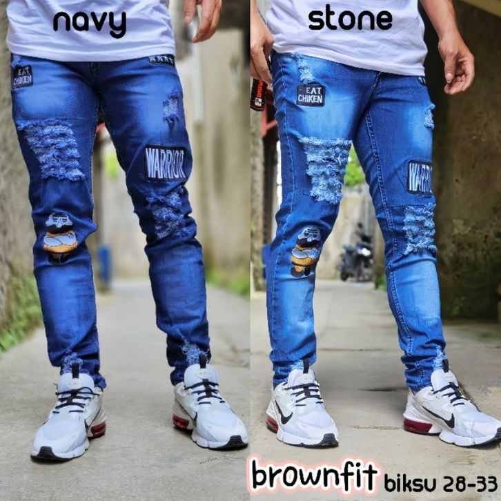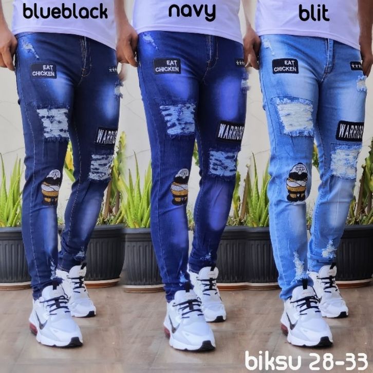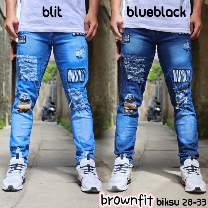 Celana Jeans Sobek Panjang Pria Slim Fit Skinny Ripped Melar Original Denim Kualitas Distro emblem