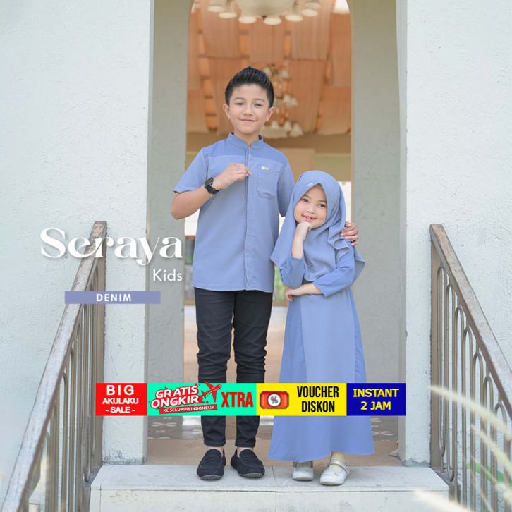 PROMO GRATIS ONGKIR NAISHA OFFICIAL - DENIM KIDS Seraya Family Set | Pakaian Muslim Anak couple | Baju Lebaran KUALITAS