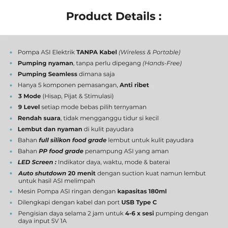 Pompa Asi Elektrik Wireless Electric Portable Breast Pump M3 24mm - Pompa ASI