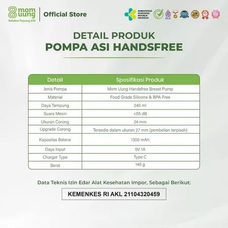 Pompa ASI Elektrik Mom Uung Handsfree Wireless Dual Mode - Hospital Grade - Garansi 2 Tahun