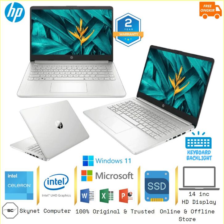 LAPTOP HP 14S DQ3110TU DQ0510TU INTEL N4120 RAM8GB SSD256GB 14 HD WINDOWS 11 DAN OHS 2021 ORIGINAL