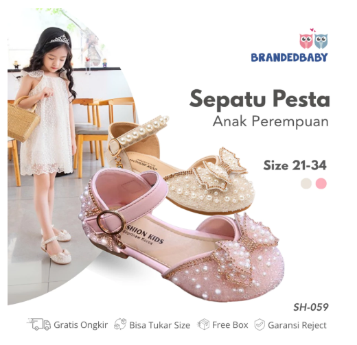FREE ONGKIR Sepatu Pesta Anak Perempuan Pita Manik Mutiara Premium Quality Size 21-34