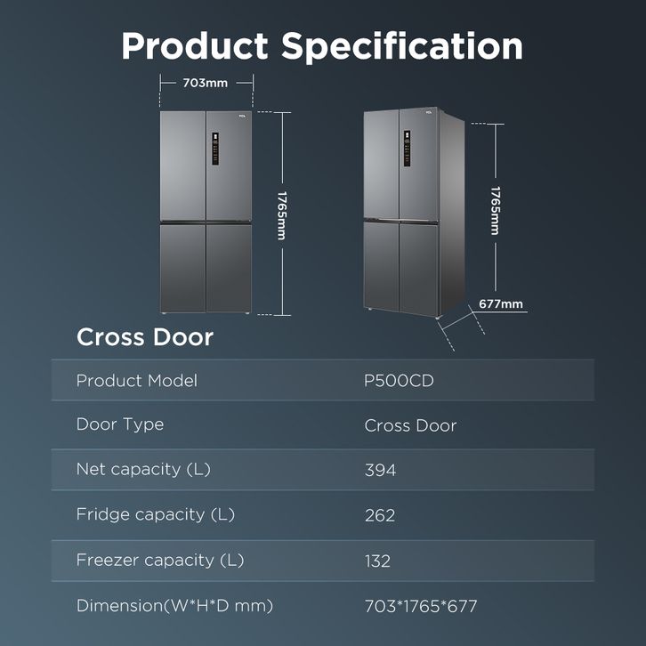 TCL Kulkas 4 Pintu – Kapasitas 439 L - No Frost - Twin Eco Inverter - Electronic Control - P500CD