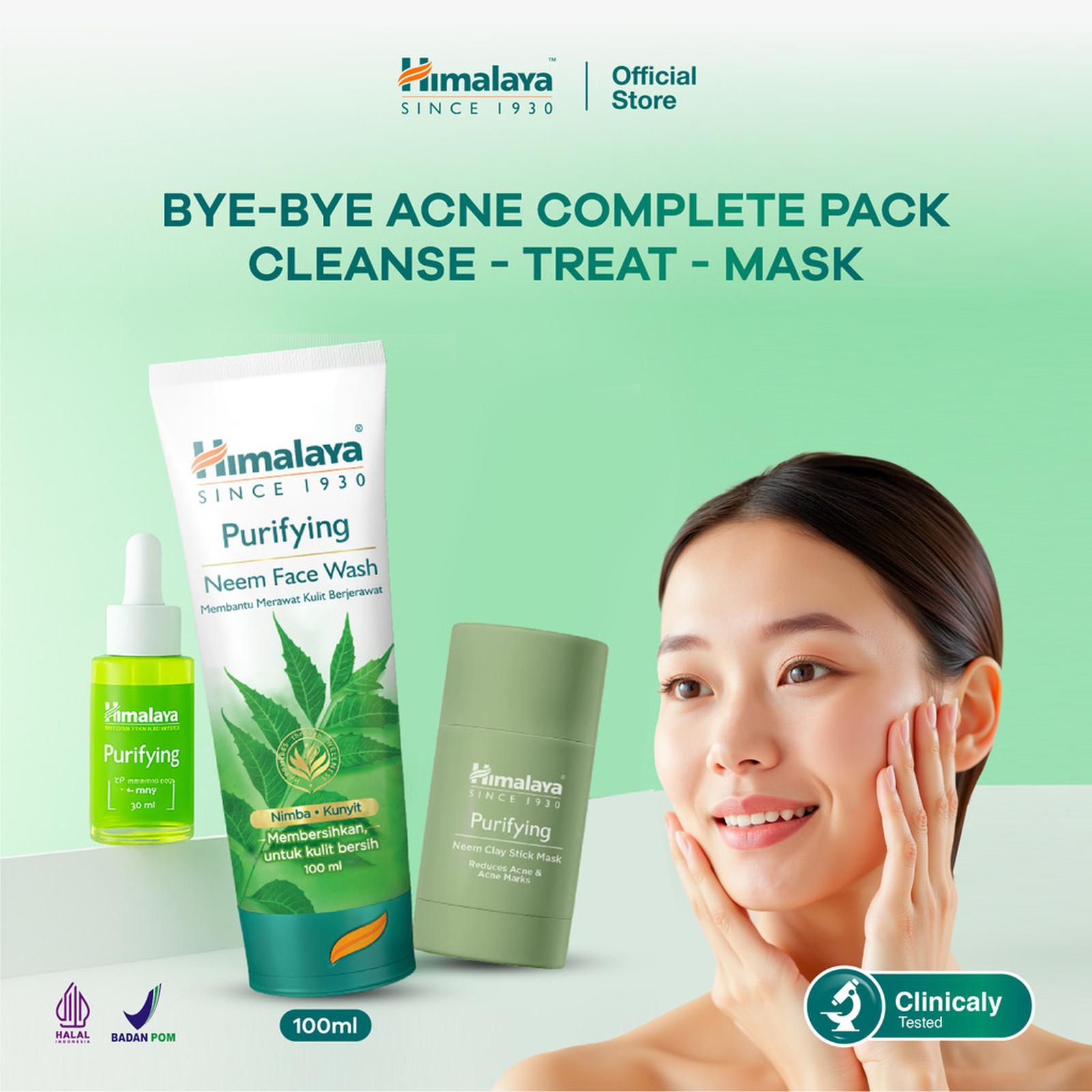 Bundling Isi 3 ) Himalaya Purifying Neem Clay Stick Mask 30gr + Purifying Neem Face Wash 100ml + Purifying Neem Serum 15