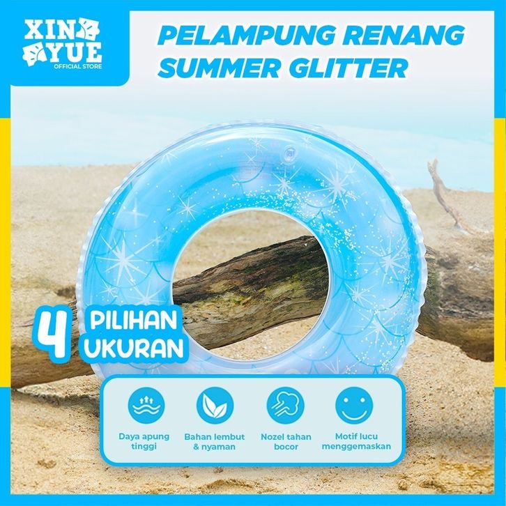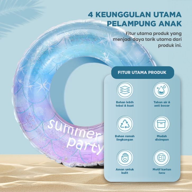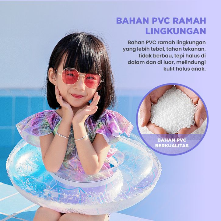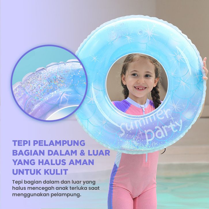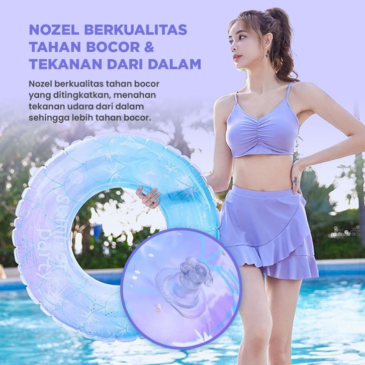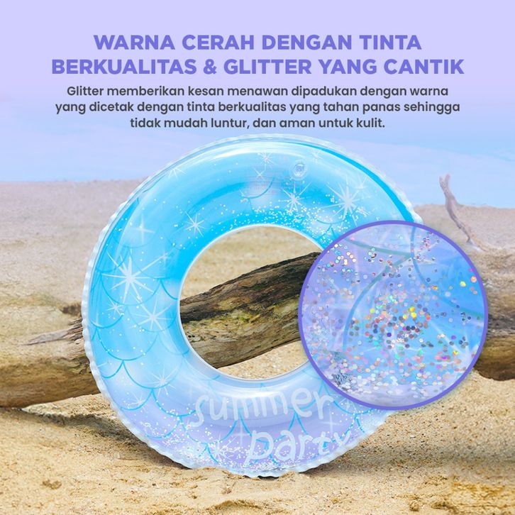 BAN BULAT Pelampung Ban Renang Anak - Dewasa Motif Sirip Ikan Glitter Bahan PVC Premium Swim Ring