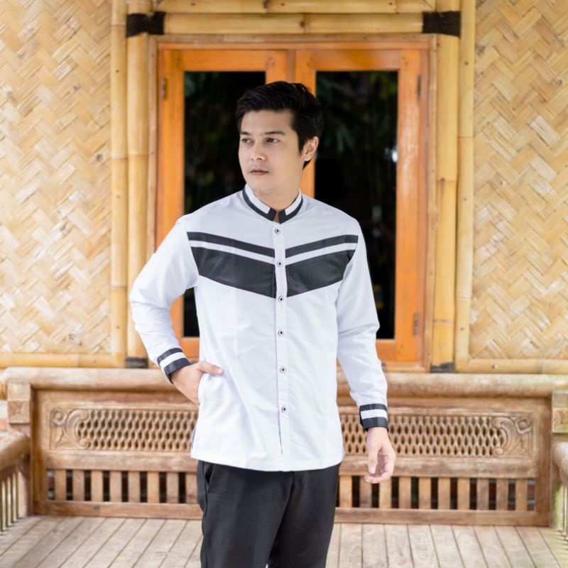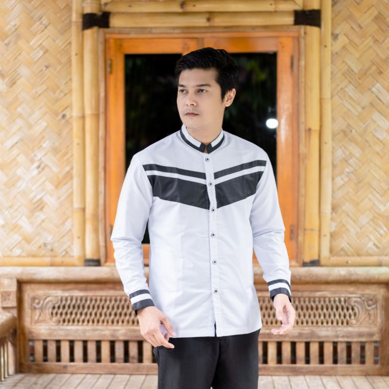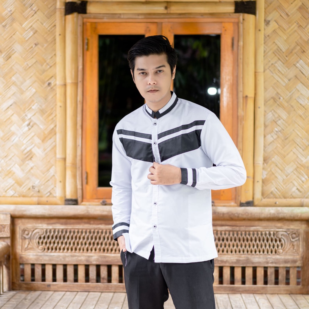 KENZU - BAJU KOKO PRIA LENGAN PANJANG MOTIF PANAHAN WARNA PUTIH M-L-XL