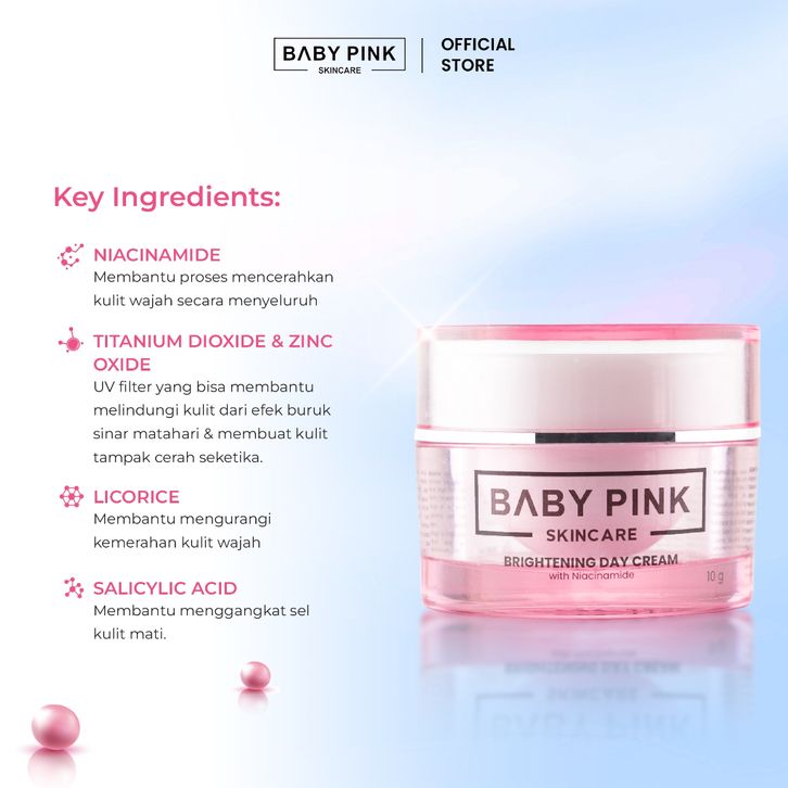BABY PINK SKINCARE - Brightening Day Cream with Niacinamide 10Gr Resmi BPOM | Krim Siang dengan UV Filter Membantu Mence