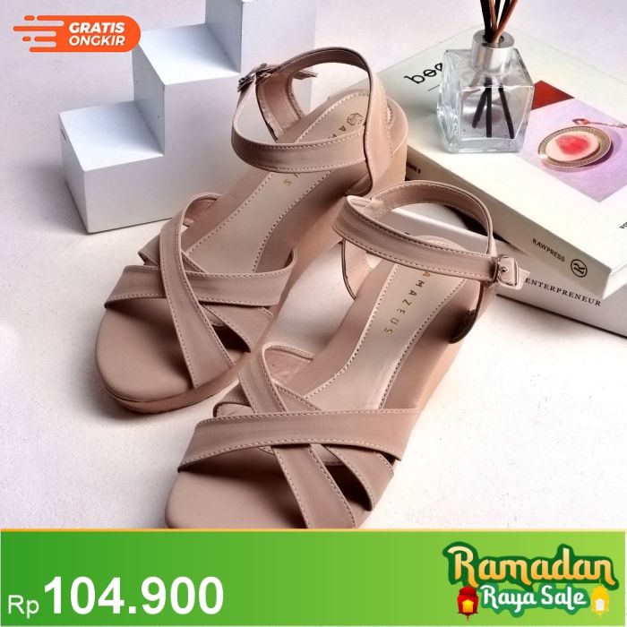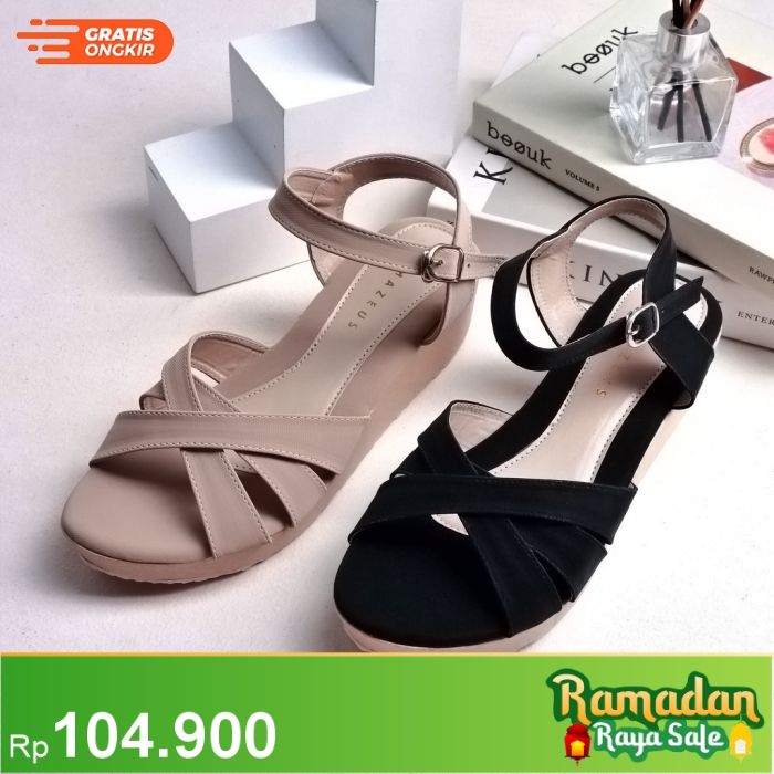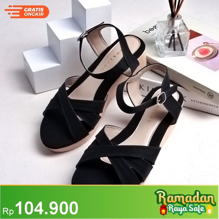 Amazeus RUCIRA Wedges Tali Sepatu Wanita - Hitam, 40 - Import Pesta Zara Gucci Emory Fladeo jelly Karet