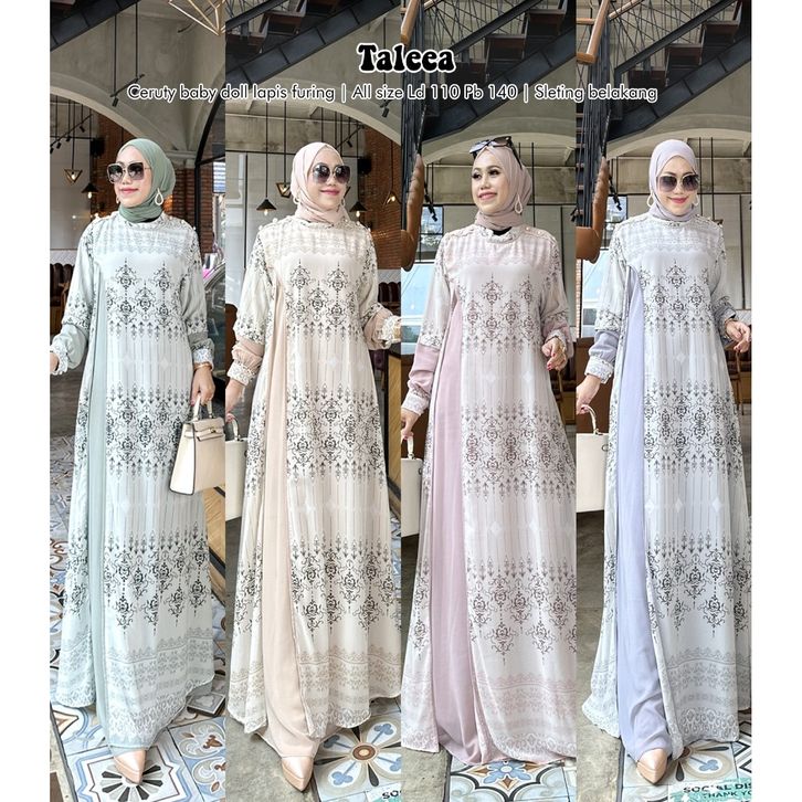 GAMIS MUSLIM SYARI IBU DRESS HIJAB MUSLIMAH GUDANG TAALEA BAHAN CERUTY BABY DOLL LAPIS FURING TERLARIS