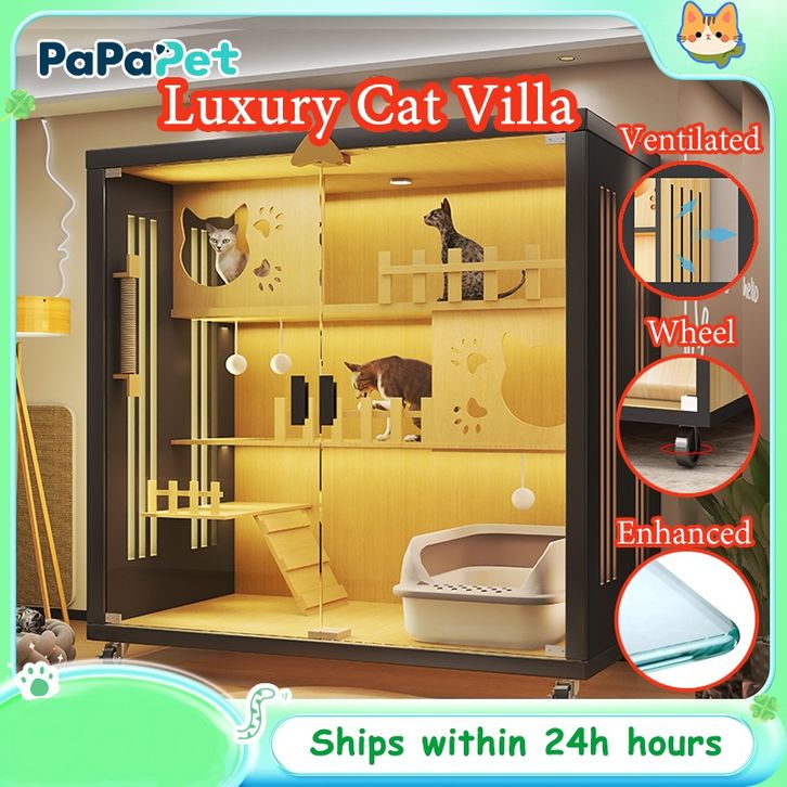 Kandang Kucing Jumbo Tingkat Rumah Villa Kayu Elegant Kaca