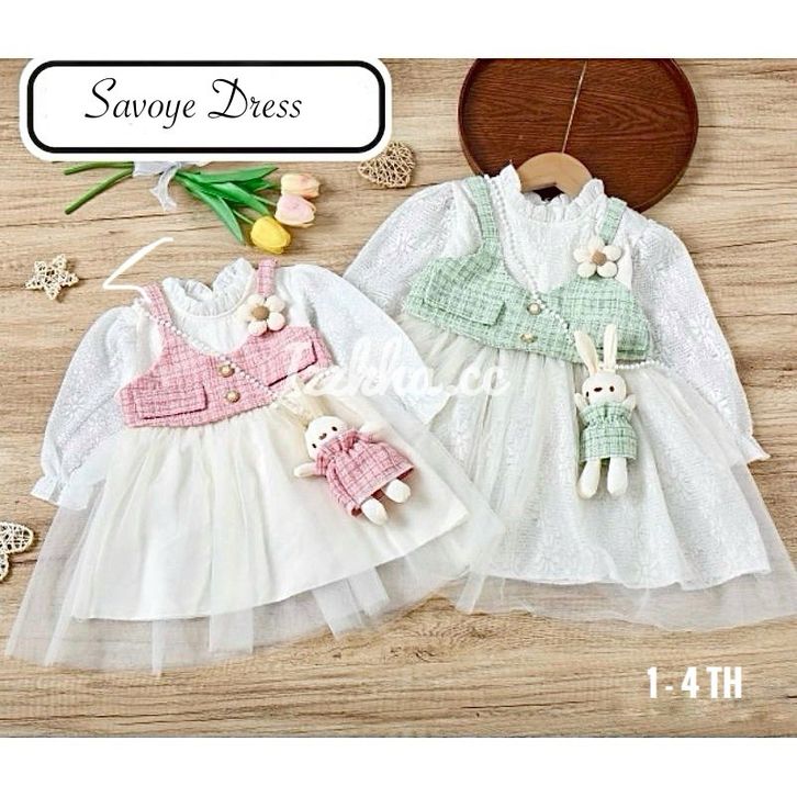 DRESS ANAK IMPORT+ TAS KELINCI TWEED MIX BRUKAT PUTIH 1-4TH