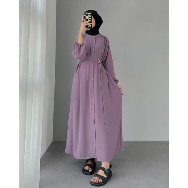 LOCA DRESS GAMIS FULL KANCING CRINKLE AIRFLOW LD 110 GAMIS POLOS CRINKLE GAMIS MUSLIMAH TERBARU