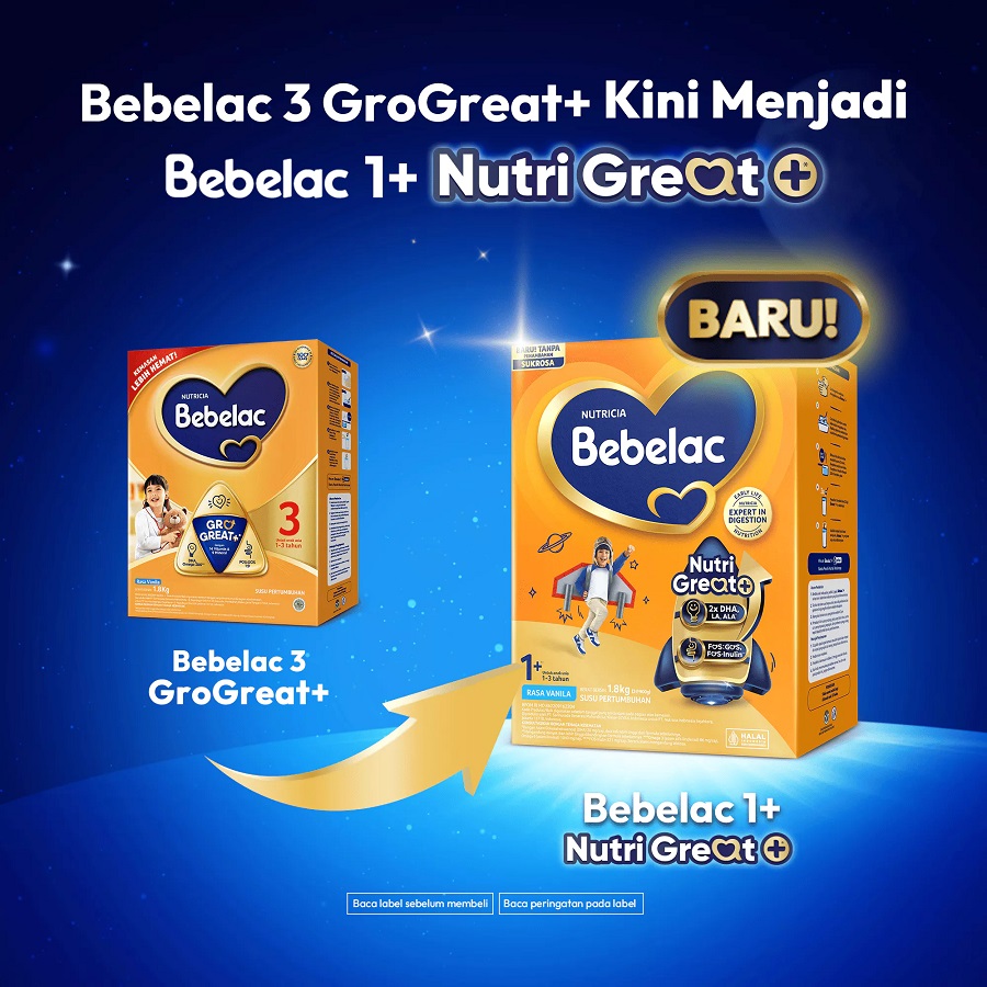 Bebelac 1+ (1-3 Tahun) Vanila/Madu 1800 gr Susu Pertumbuhan Bubuk