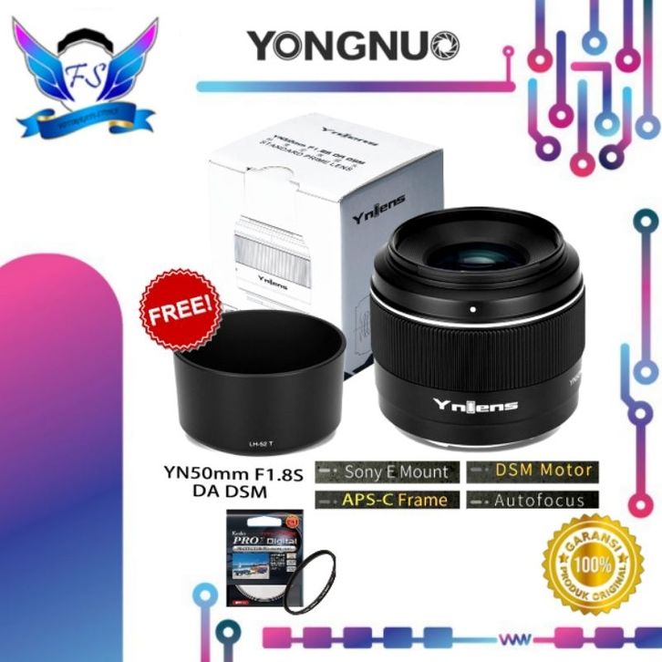 Lensa Fix Yongnuo YN 50mm f1.8 DA DSM Lensa 50mm for Sony E - Lensa Kamera Canon Nikon Dslr Sony Gopro Sigma