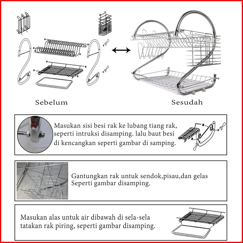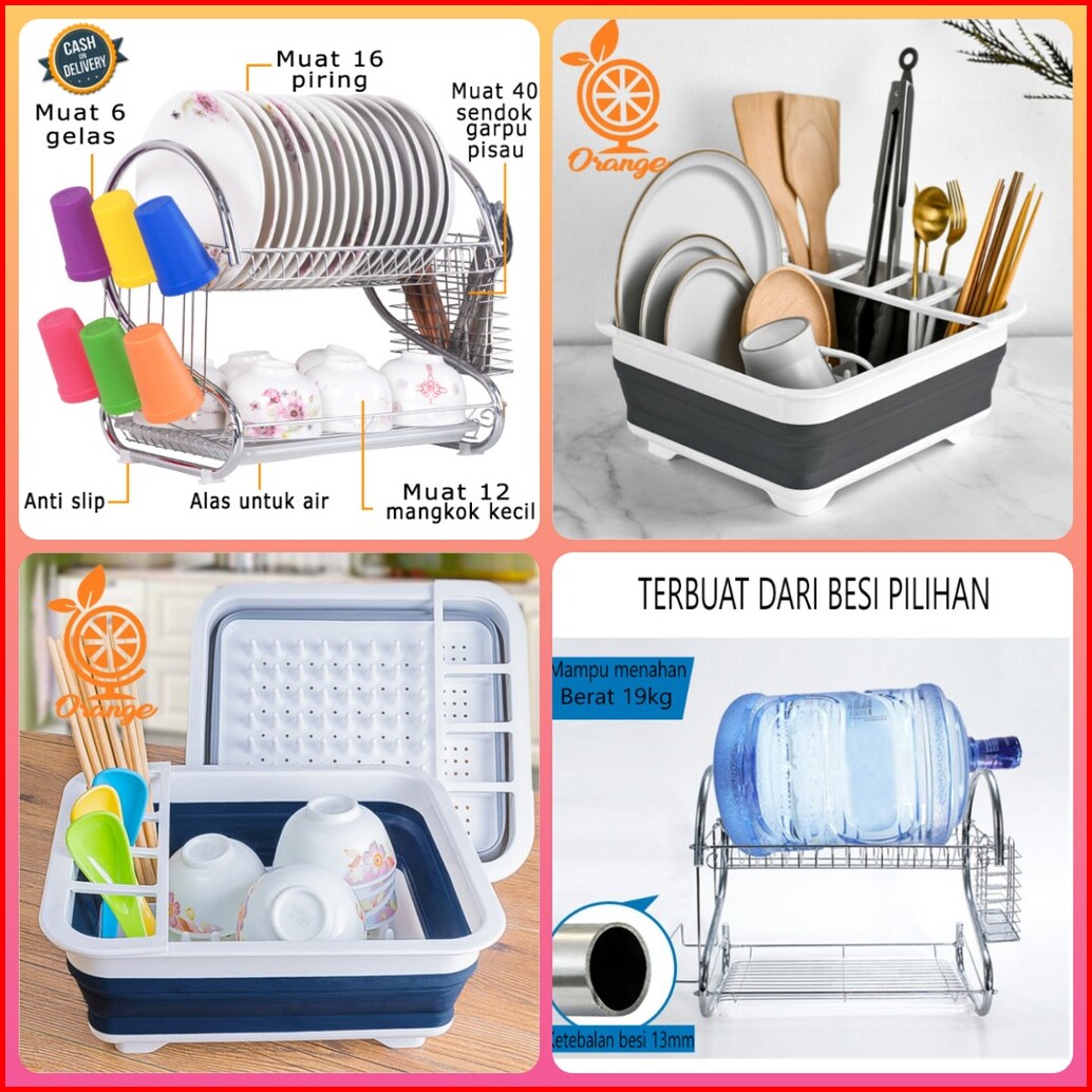 Gdws88 Rak Piring Stainless 2 Susun Tier Dish Drainer Rack Minimalis Peniris Portable Dapur Susun