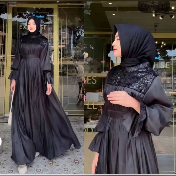 Dress Muslim Wanita Fashion Baju Muslim Cewek Elegan Ukuran Allsize Bahan Santorini Shimer Mix Tile Sequin Mewah
