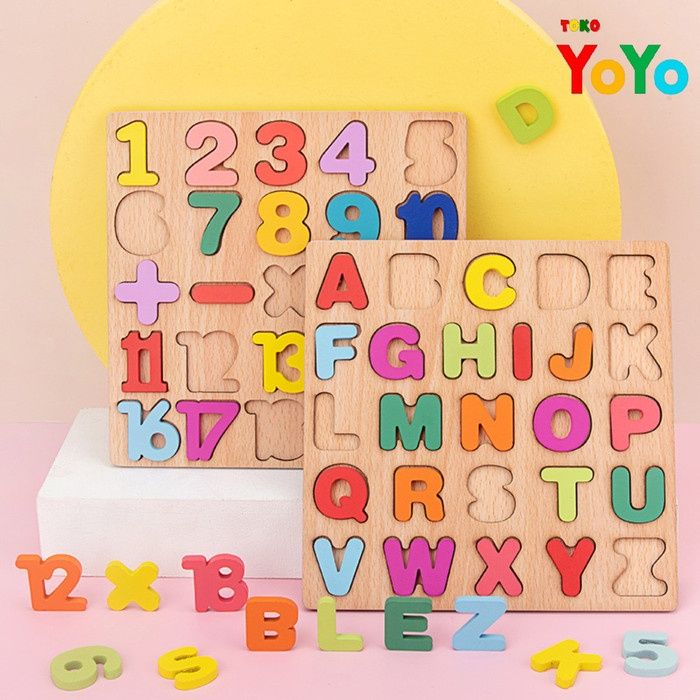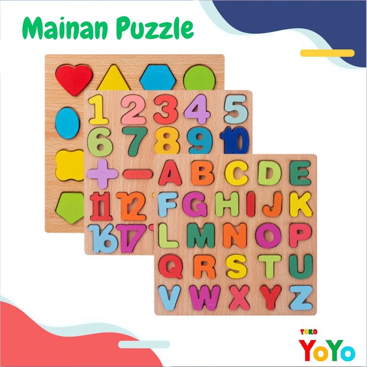 Mainan anak laki laki perempuan Puzzle Kayu Edukasi 3D Angka Alphabet Bentuk Mainan Anak Wooden Puzzle
