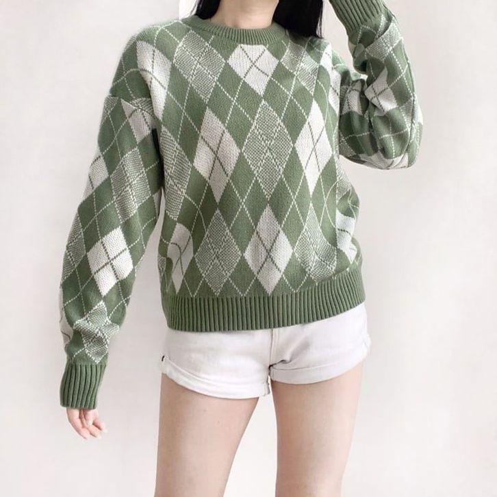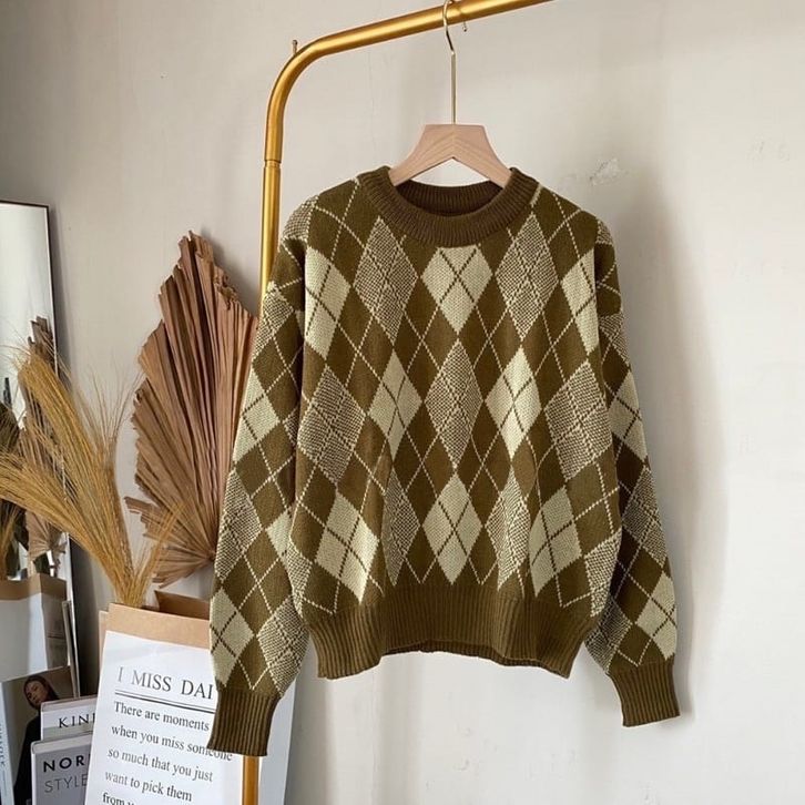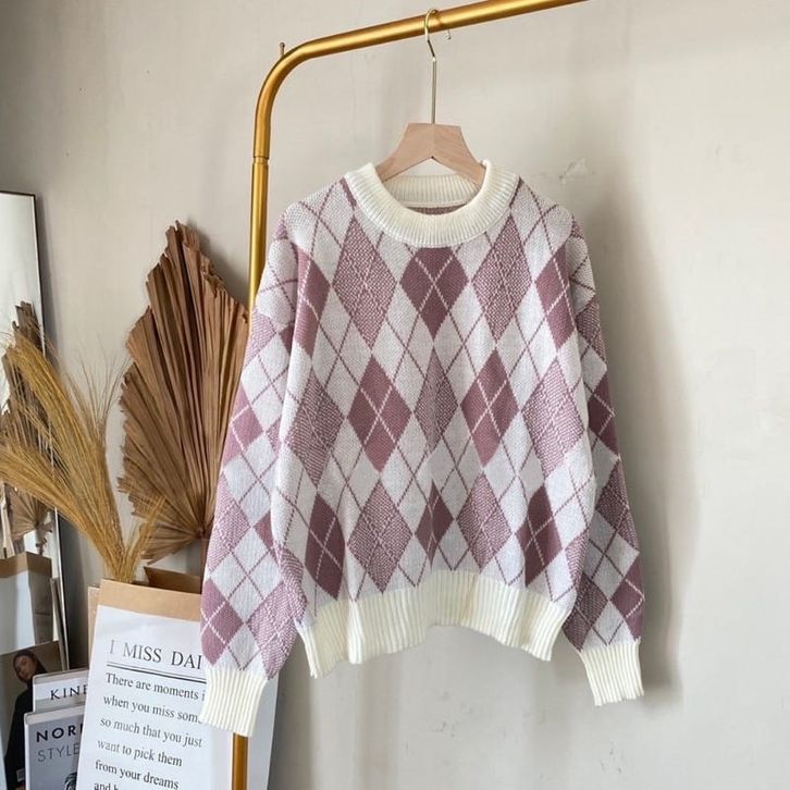 Blouse Wanita Motif Diamonds Tebal Premium Basic Atasan Kasual Kekinian Korean Style Perempuan Rajut Tebal Ld 110
