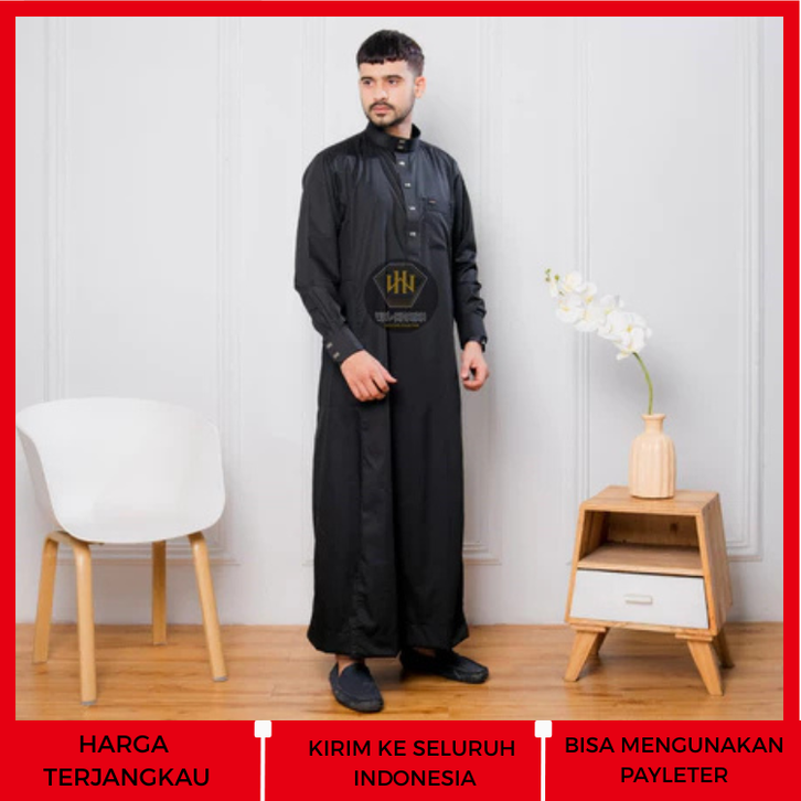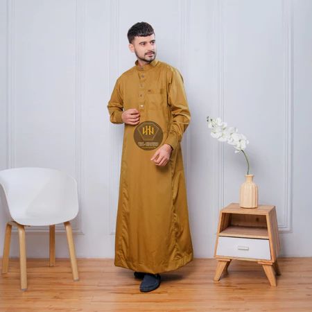 Jubah Pria Dewasa Premium Lengan Panjang Manset Bahan Katun Maroko Premium Kancing Motif