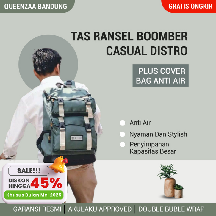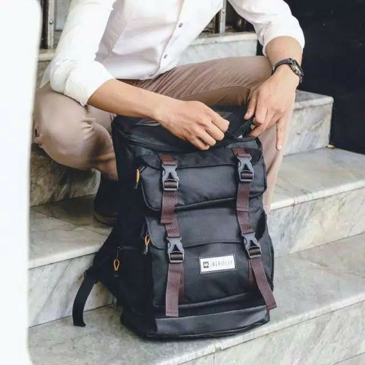 Tas Laptop Kuliah Kerja Bomber Casual Pria Gunung Penutup Resleting Motif Polos Bahan Nilon Cordura Stylish aman Enteng
