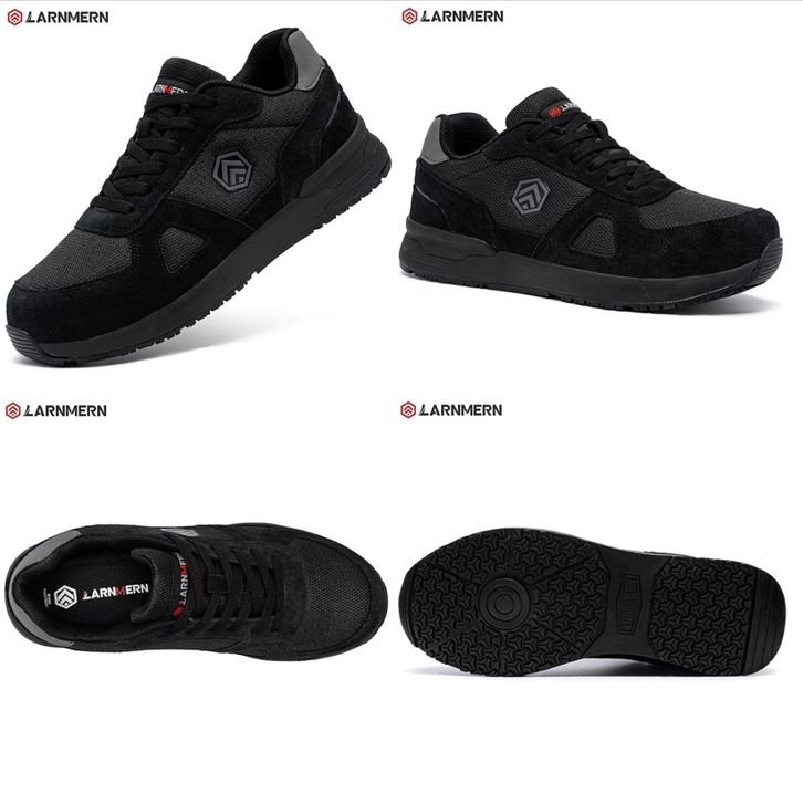 Sepatu Safety Pria LARNMERN Safety Shoes Mens Sneakers Steel Toe Construction AntiStatic Work Shoes Pria L9096 Black