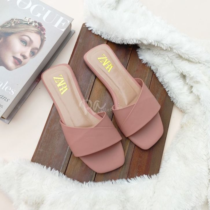 SANDAL ZARA WANITA FLAT SHOES SANDAL TEPLEK WANITA SENDAL FLAT ZARA TERBARU RA-00534 SANDAL SLIP ON WANITA