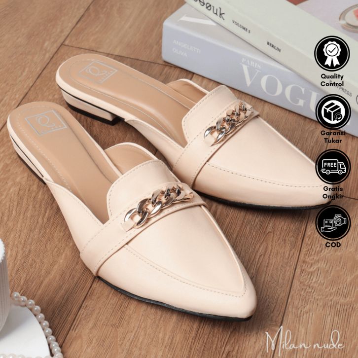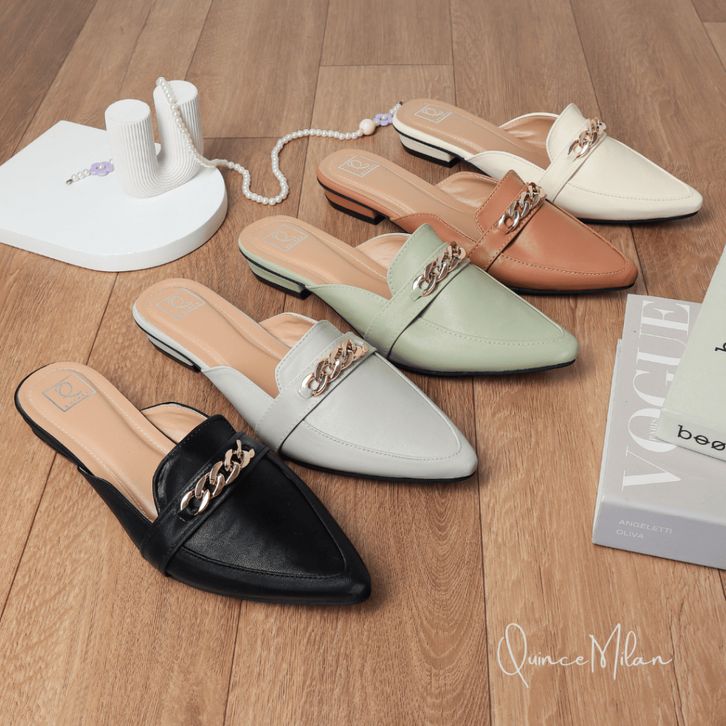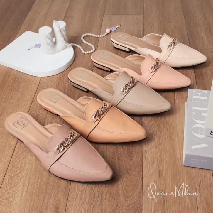 Lapepa Yuk - Amora Sepatu Sandal Wanita Slip On Mules Size 36 - 40 Casual Sendal Slop Teplek Flat Ujung Lancip Tertutup