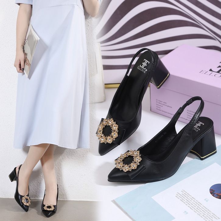 Sepatu Heels Wanita Ellora EL-6648 Sepatu Wanita Hak Chunky Heels 6.5Cm Slingback Import Sepatu Hak Sepatu Formal Wanita