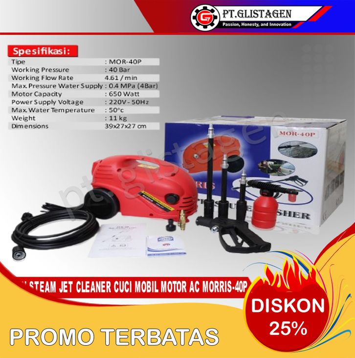BARU+MORRIS MOR-40P MESIN JET CLEANER STEAM CUCI MOBIL MOTOR AC MORRIS-40P