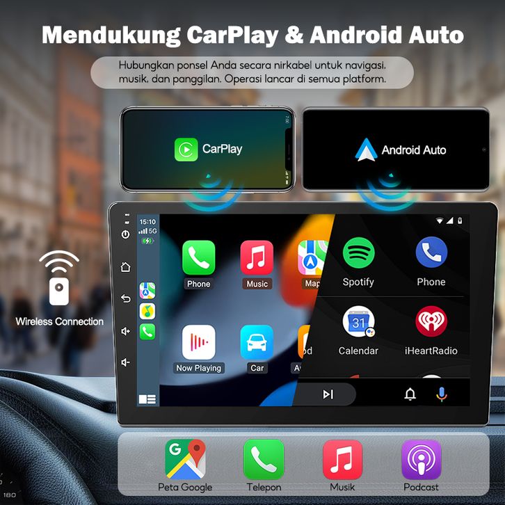 SOARFLY Head Unit Android 7/9/10 Inci 6+64G Carplay Android 15 Dukungan WiFi/GPS/Youtube/Pendinginan kipas ganda