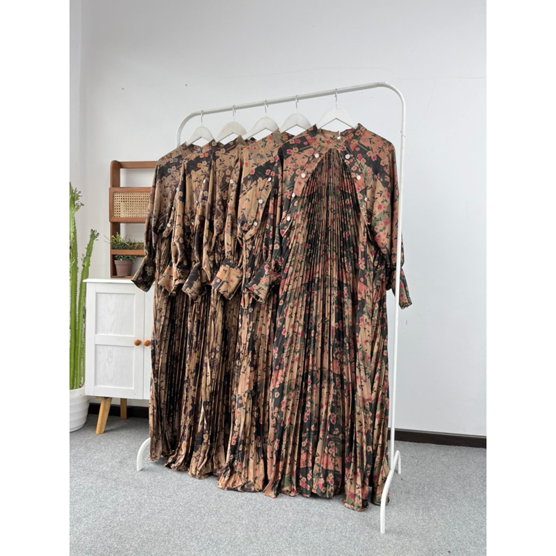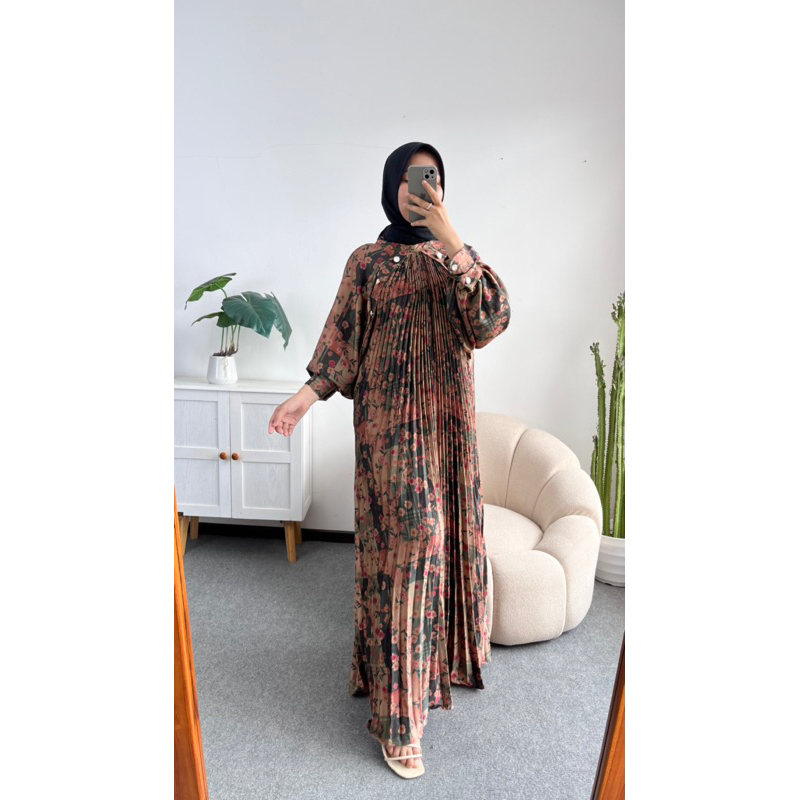 NINA PLEATS PATTERN LONGDRESS PROMO RAMADHAN GAMIS PEREMPUAN GAMIS WANITA ALL SIZE