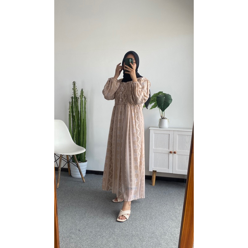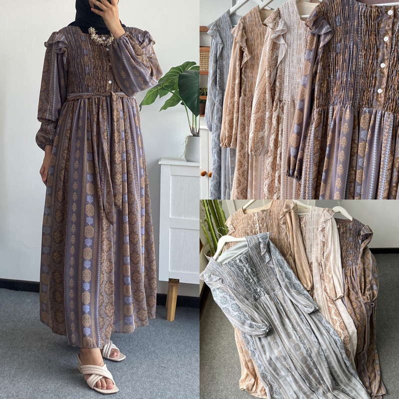 LITTLE BUTIK SHELANI PATTERN LONGDRESS PROMO RAMADHAN GAMIS PEREMPUAN GAMIS WANITA ALL SIZE