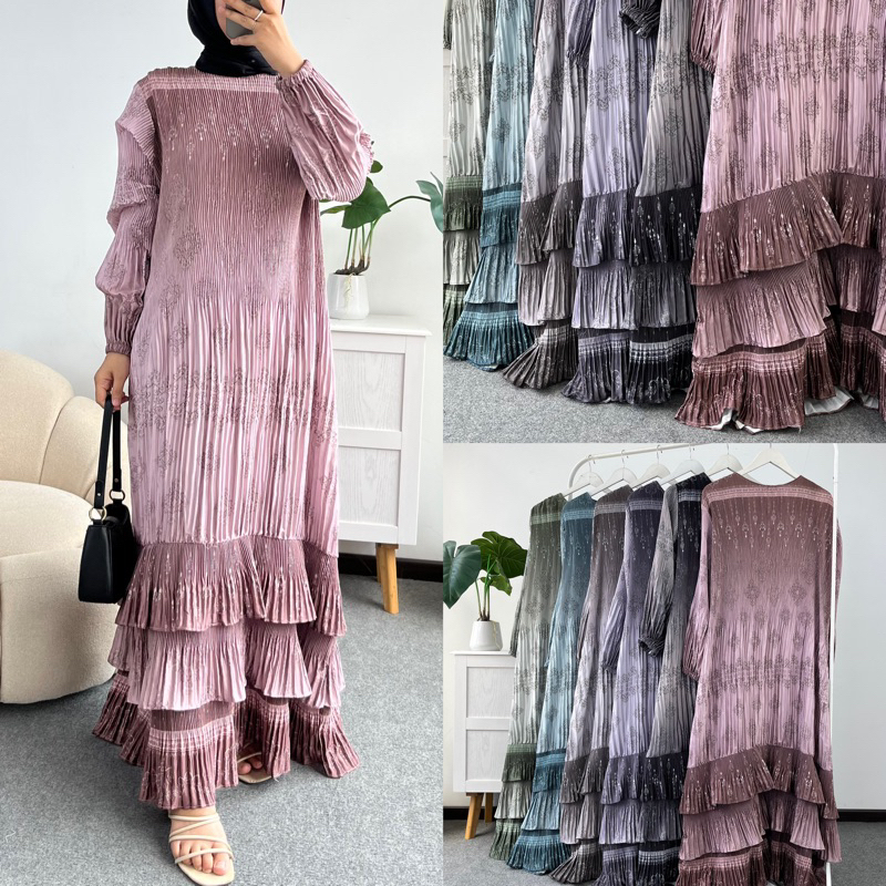 LITTLE BUTIK SYAVIKA PLEATS LONGDRESS PROMO RAMADHAN GAMIS PEREMPUAN GAMIS WANITA ALL SIZE