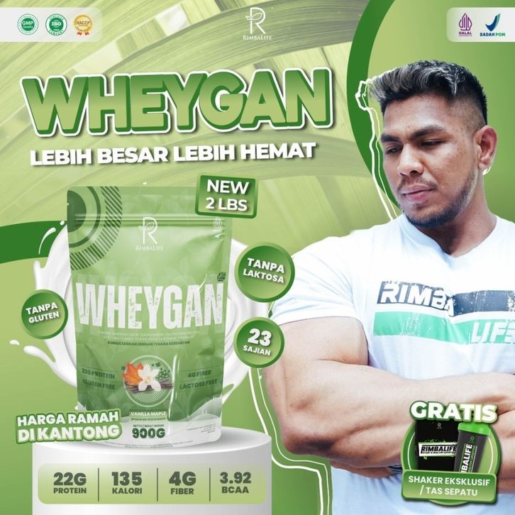 Rimbalife Rimba Wheygan 2 Lbs Whey protein Vegan Rasa Vanilla Maple Suplemen Fitness Olahraga Gym Pengganti Makan Baru