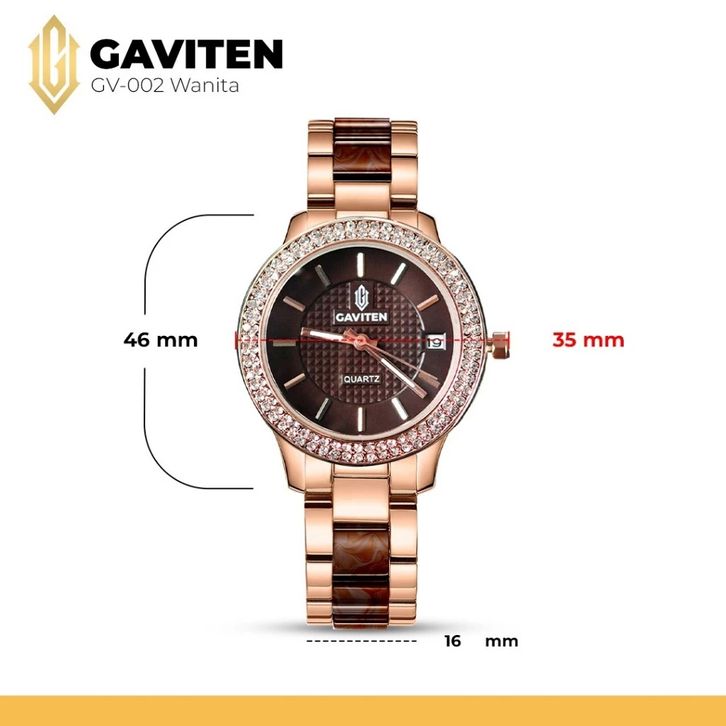Jam Tangan Wanita Gaviten GV002 Original Garansi Resmi 1 Tahun Stainless Steel Tanggal Aktif Anti Air Free Paper Bag