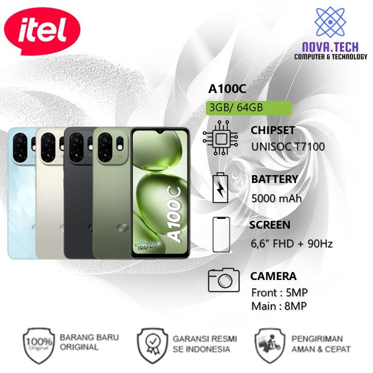 Handphone murah Itel A100C [3GB 64GB] Unisoc T7100 Octa-core, 5000mAh - Garansi Resmi
