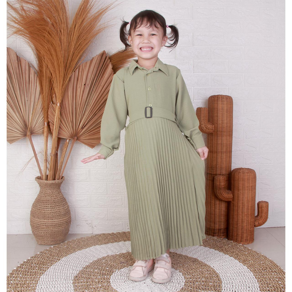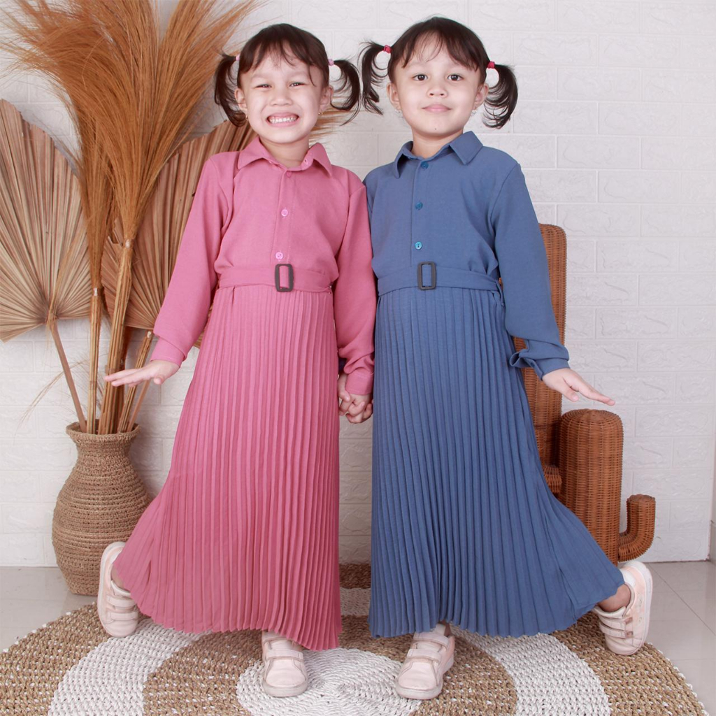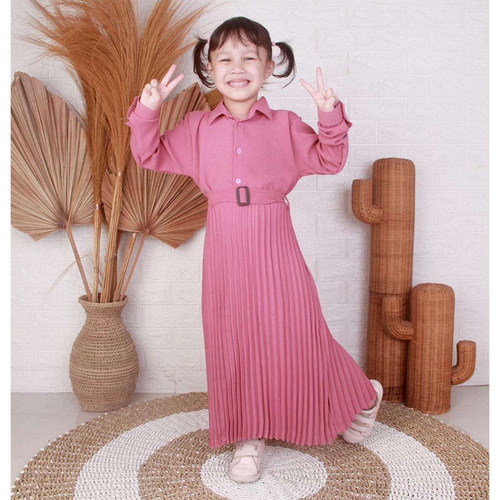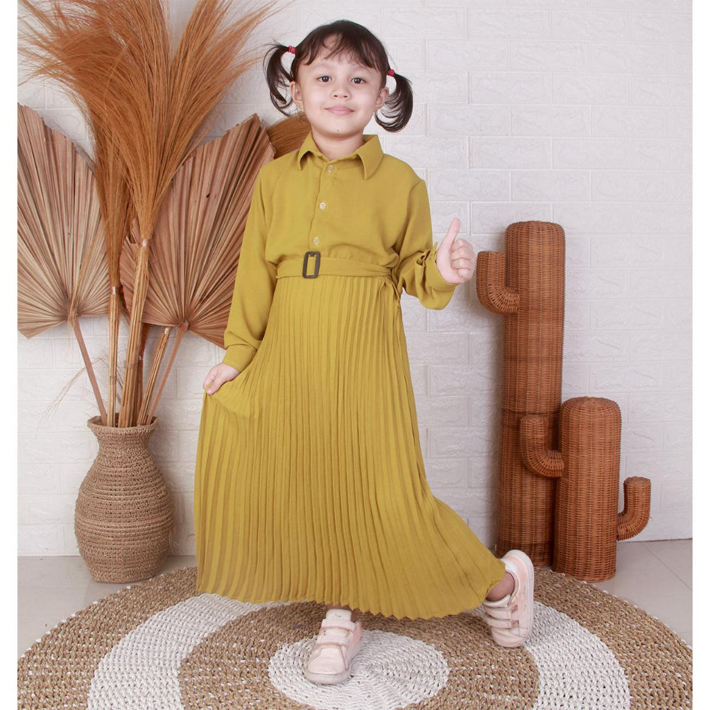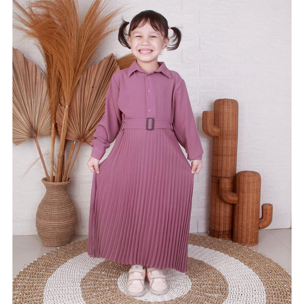 GAMIS ANAK PEREMPUAN PLISKET CRINCLE AIRFLOW SAFIYA FREE BELT 4 - 11 TAHUN